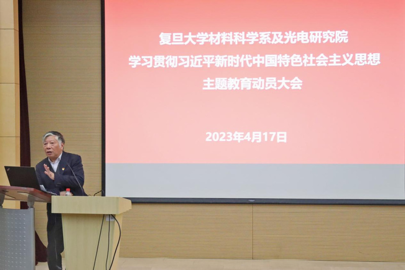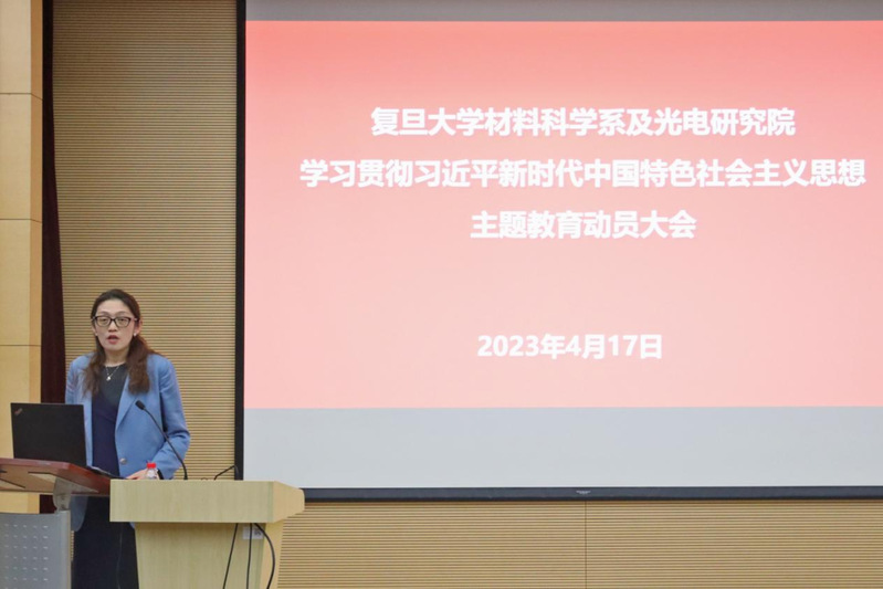 4月17日下午,复旦大学材料科学系及赢乐67在江湾校区先进材料楼一楼报告厅举行学习贯彻习近平新时代中国特色社会主义思想主题教育动员部署会议。复旦大学主题教育巡回指导组第四组组长阎嘉陵同志出席会议并作指导讲话,材料科学系党委书记于瀛同志主持会议并作动员部署。