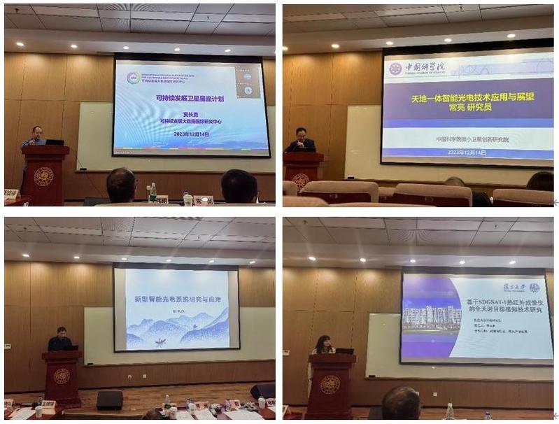 在学术研讨会环节,窦长勇副主任、常亮所长、陈长征研究员、李丽圆博士后和王伟明博士分别作了关于“可持续发展卫星星座计划”、“天地一体智能光电技术应用与展望”、“新型智能空天光电系统研究与应用”、“基于SDGSAT-1热红外成像仪的全天时目标感知技术研究”和“薄膜型III-V光电子器件技术和应用”为主题的学术报告。